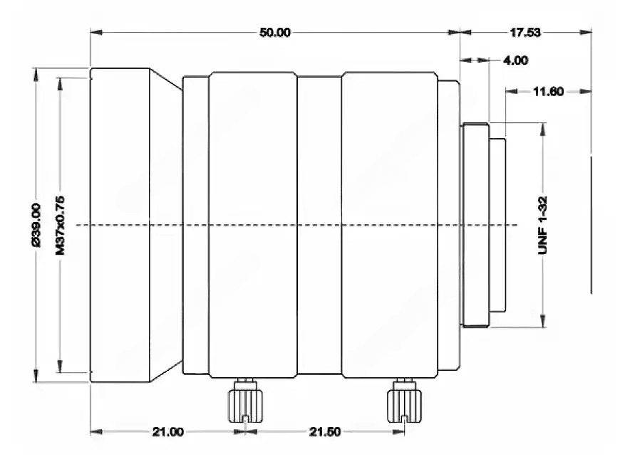 Физические размеры телефото объектива Telephoto Lens PT3611614M10MP, мм