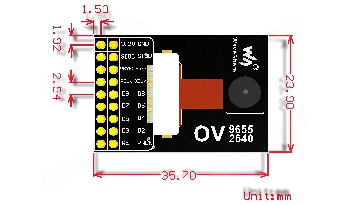 Модуль UXGA-камеры с матрицей OV2640 в сверхкомпактном корпусе, актуальном в производстве мобильной электроники, предназначен для разработки приложений с элементами фото- и/или видеосъёмки. Чип OV2640 имеет разрешение 1632х1232 точек, эквивалентное значению 2.0МПикс. Модуль оборудован 2-рядным 18-контактным (2x9) разъёмом подключения с шагом выводов 2.54мм. Коммуникационный разъём платы OV2640 включает интерфейc последовательной шины управления камерой (Serial Camera Control Bus, сокр. SCCB) — 2-проводный аналог шины IIC/I2C (TWI). А также содержит 8-битную шину параллельной передачи данных. Внутри монокристального сенсора Omni Vision OV2640 располагается процессор обработки изображений, отвечающий за функции управления экспозицией, корректировки гаммы и баланса белого цвета, корректировки уровня чёрного, регулировки насыщенности цвета, масштабирования по двум осям (независимое), помехоподавления, переворота, сжатия данных JPEG-кодеком и др. Высокое качество изображения в разрешении UXGA, со сниженными или полностью устранёнными постэффектами шума, смазывания или размытия (блума), обеспечивают проприетарные технологии OmniPixel2. Камера OV2640 может делать снимки с частотой до 15 кадров в секунду с разрешением 1600х1200 (UXGA) или с более высокой частотой до 30 кадров в секунду для разрешения 800х600 (SVGA). Поддерживаются несколько форматов вывода данных цвета изображения: RGB, YUV или YCbCr.
