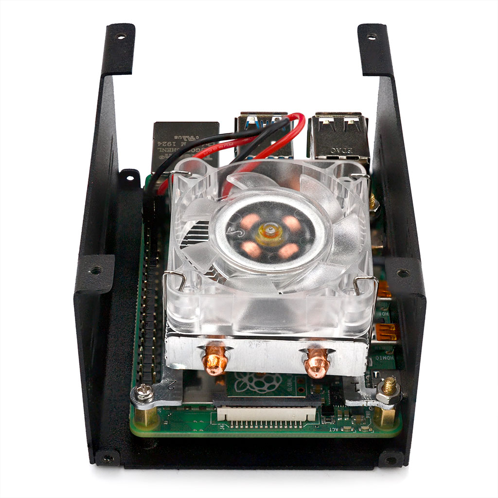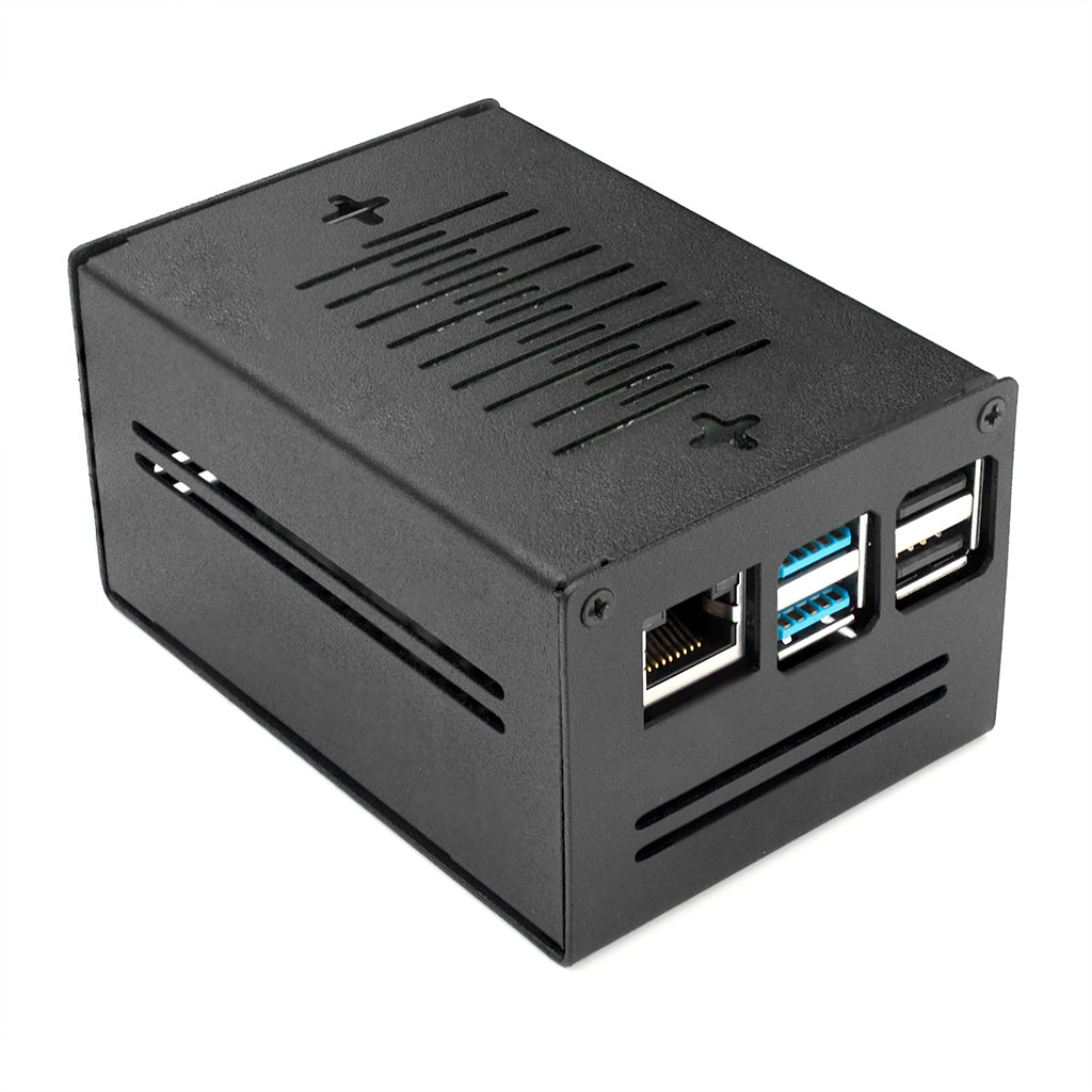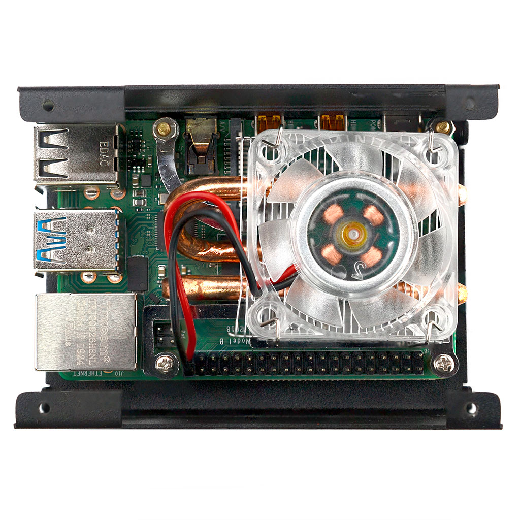 Корпус черный металлический для RPi4 с низкопрофильной системой охлаждения горизонтального исполнения. Корпус обеспечивает не только механическую защиту но и способствует эффективному отведению тепла от процессора, сохраняя при этом полный доступ ко всей
