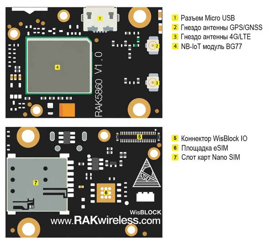 WisBlock RAK5860 NB-IoT Interface Module. Модуль интерфейса NB-IoT c 4G/LTE/GPS.