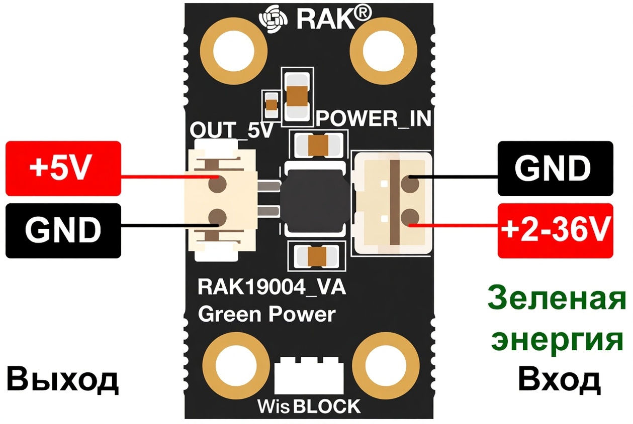 WisBlock Power RAK19004 Модуль зеленой энергии TPS55165 5В 1А
