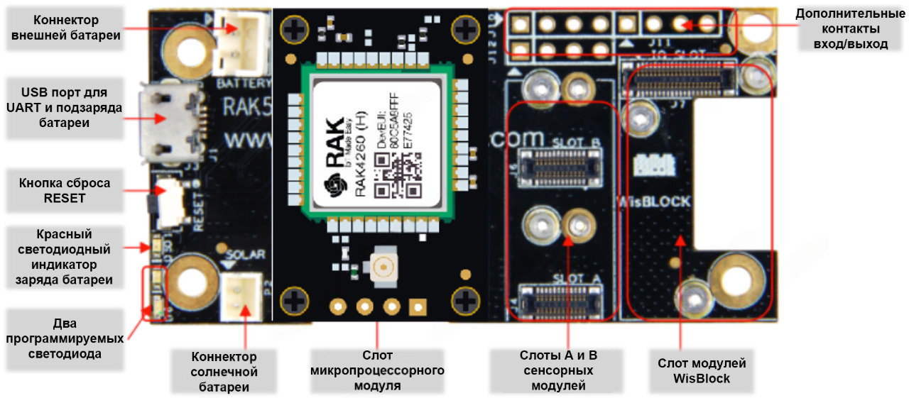 Интерфейсы оценочной платы RAK4260 LoRa/LPWAN