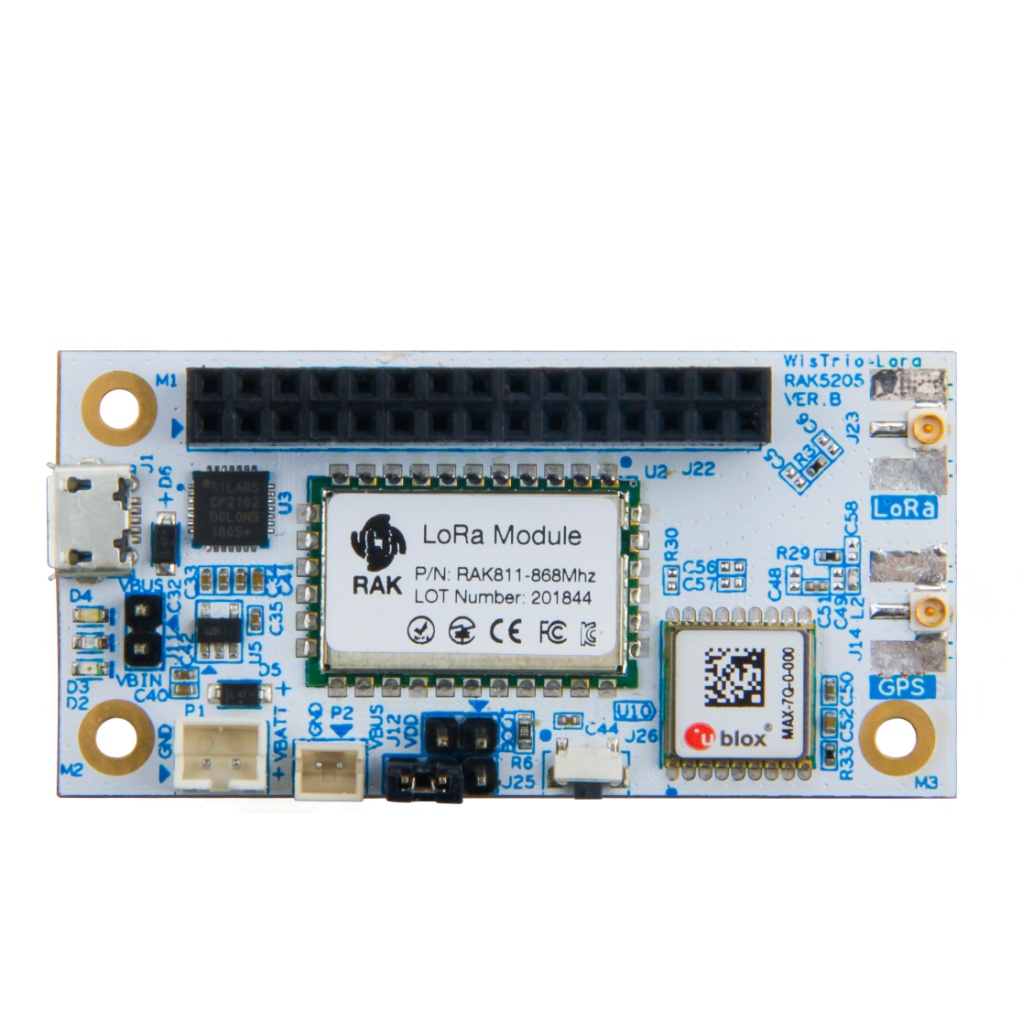 Плата RAK5205 WisTrio LPWAN Tracker построена на модуле RAK811, в основе которого лежат высокопроизводительный микроконтроллер STM32L1 и чип Semtech SX1276. Это многофункциональная сенсорная плата с беспроводной связью большого радиуса действия LoRa, со встроенным GPS-приёмником и различными интерфейсами, упрощающими разработку приложений. Представляя собой одно из наилучших решений на мировом рынке, плата идеально подходит в качестве инструмента быстрого прототипирования сетевых интеграций LoRaWAN и Интернет вещей (IoT). В сфере устройств Интернета вещей, RAK5205 WisTrio LPWAN Tracker отлично справляется в приложениях отслеживания активов, интеллектуального управления транспортными средствами, в услугах геолокации и др. И что не менее важно, благодаря поддержке многих программных сред разработки приложений, таких как CooCox IDE или Kiel, пользователи могут быстро разрабатывать собственные приложения.