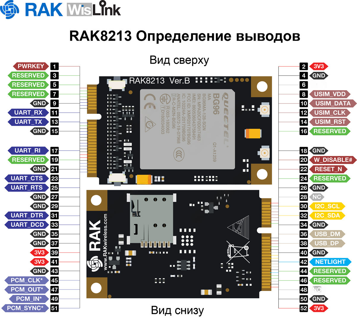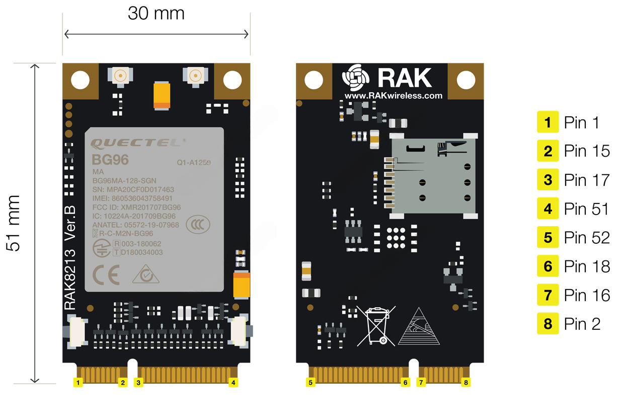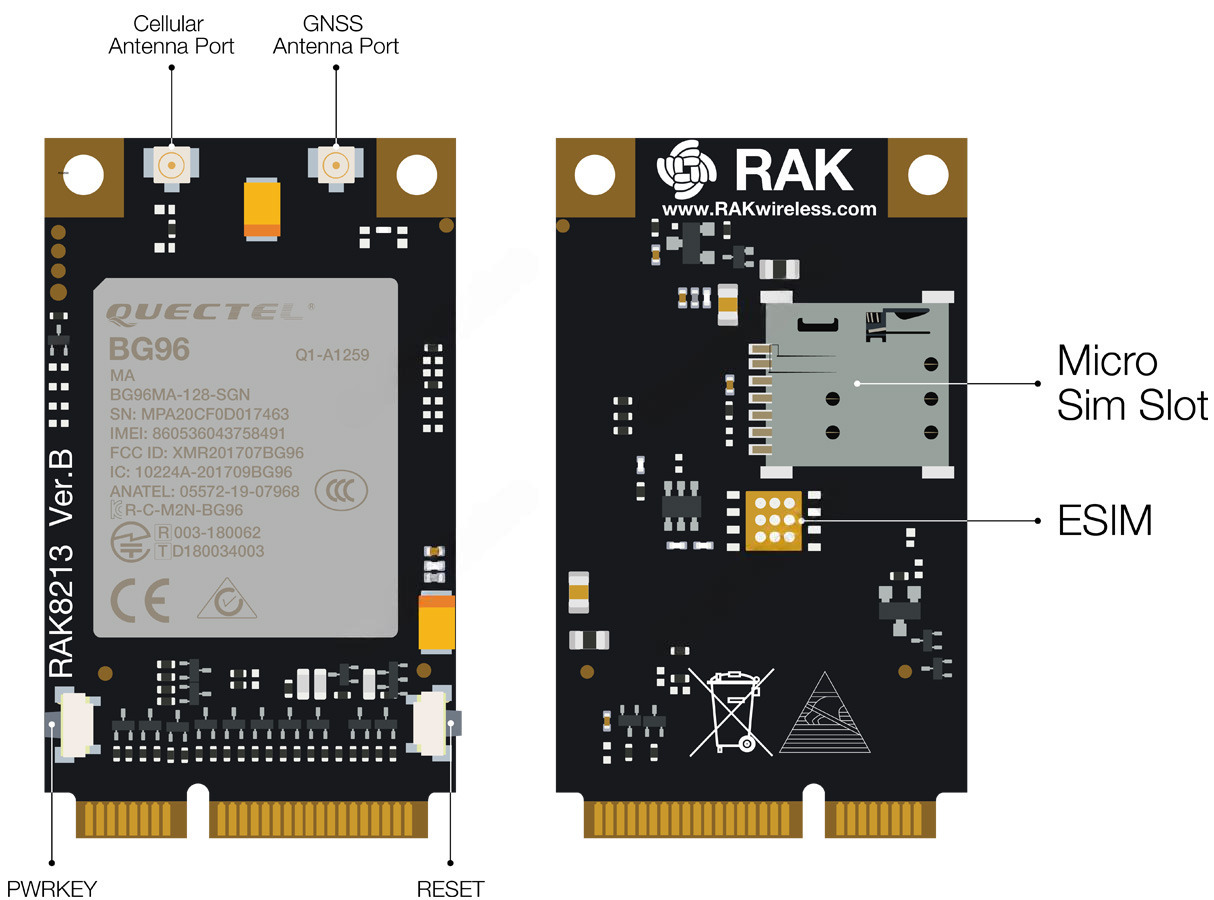 RAK8213 Мультидиапазонный модуль LTE Cat M1/Cat NB1/EGPRS в формате Mini PCIe