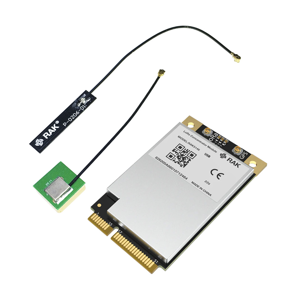 RAK5146 укомплектован одним чипом SX1303 и двумя SX1250. Первый чип работает с радиочастотным сигналом и одновременно является ядром устройства. В остальных реализованы модем LoRa и функции обработки. Встроенная дополнительная схема преобразования сигналов обеспечивает совместимость со стандартом PCI Express Mini Card. Доступны два коннектора UFL для интеграции внешних антенн.
