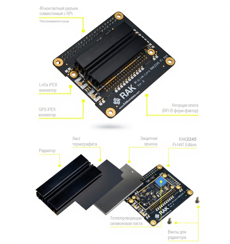 Дизайн RAK2243/RAK2245 Pi HAT разработан для совместимости с платформой Raspberry Pi