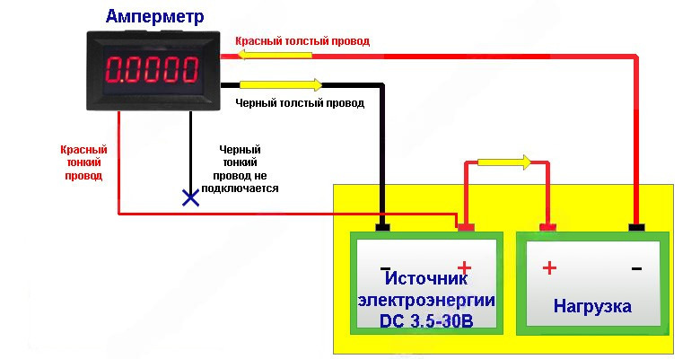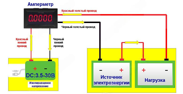 Схема подключения амперметра с отдельным источником питания в измерительную цепь