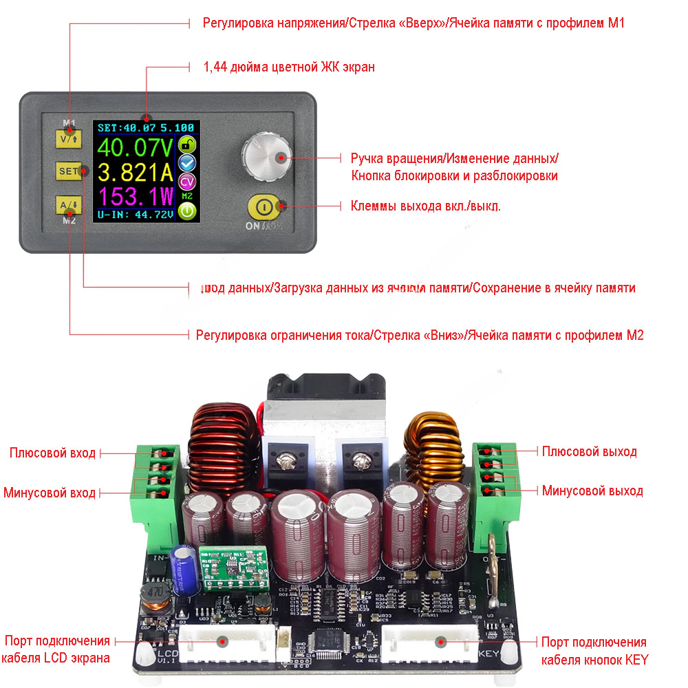 RUIDENG DPH5005-USB-BT Преобр.унив. 250Вт мощный DC-DC 6.0-50/0-50В 5А TL594C ТОК цифровой