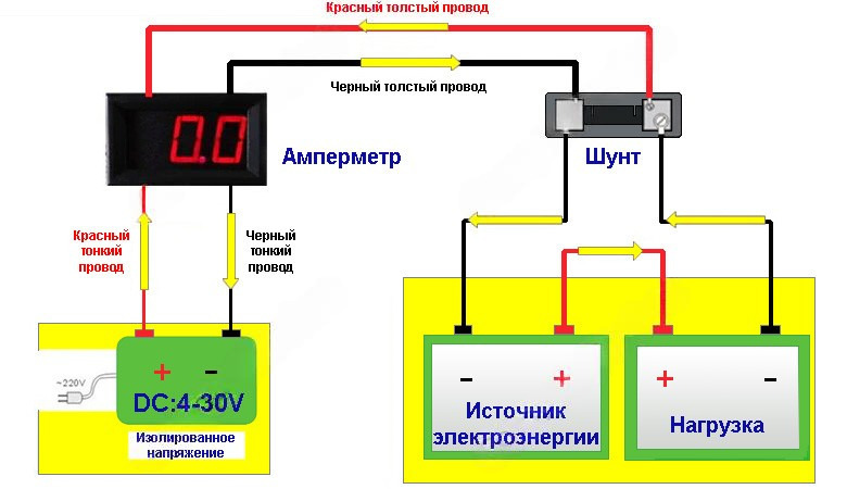 Схема подключения амперметра с отдельным источником питания в измерительную цепь