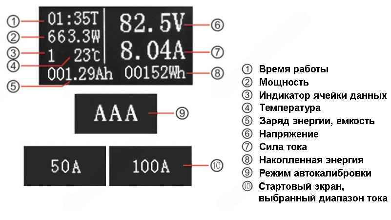 RUIDENG 100V100A(50А) OLED Тестер электрических параметров 7в1 встраиваемый, двухдиапазонный