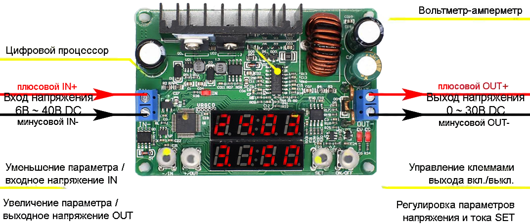 RUIDENG DP30V5A-L Преобр. понижающ. DC-DC 6-40/0-30В 5А 150Вт TL594C ТОК цифровой