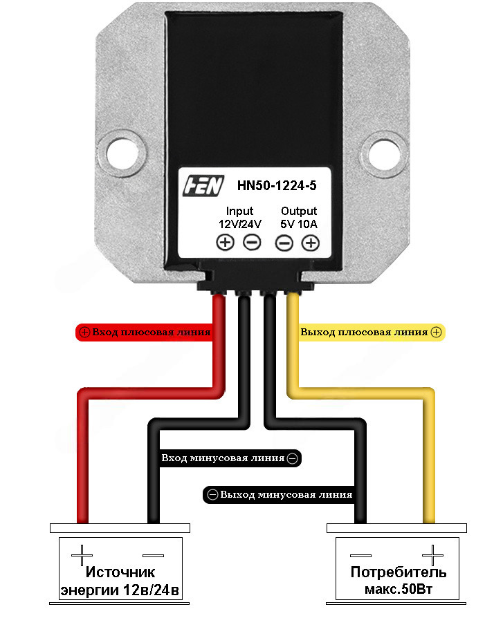 Преобр. понижающ. DC 12-24В на 5В 10 А герметичный HN50-1224-5
