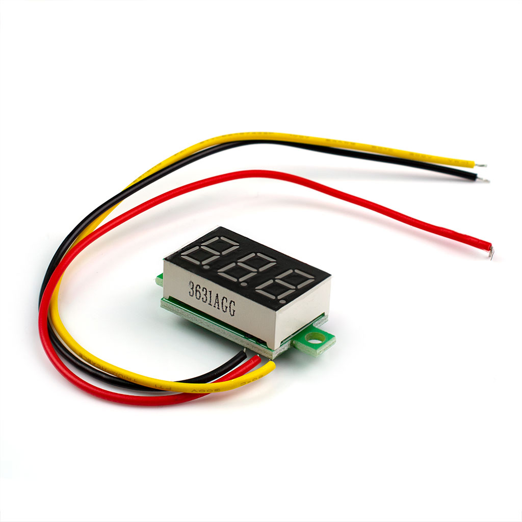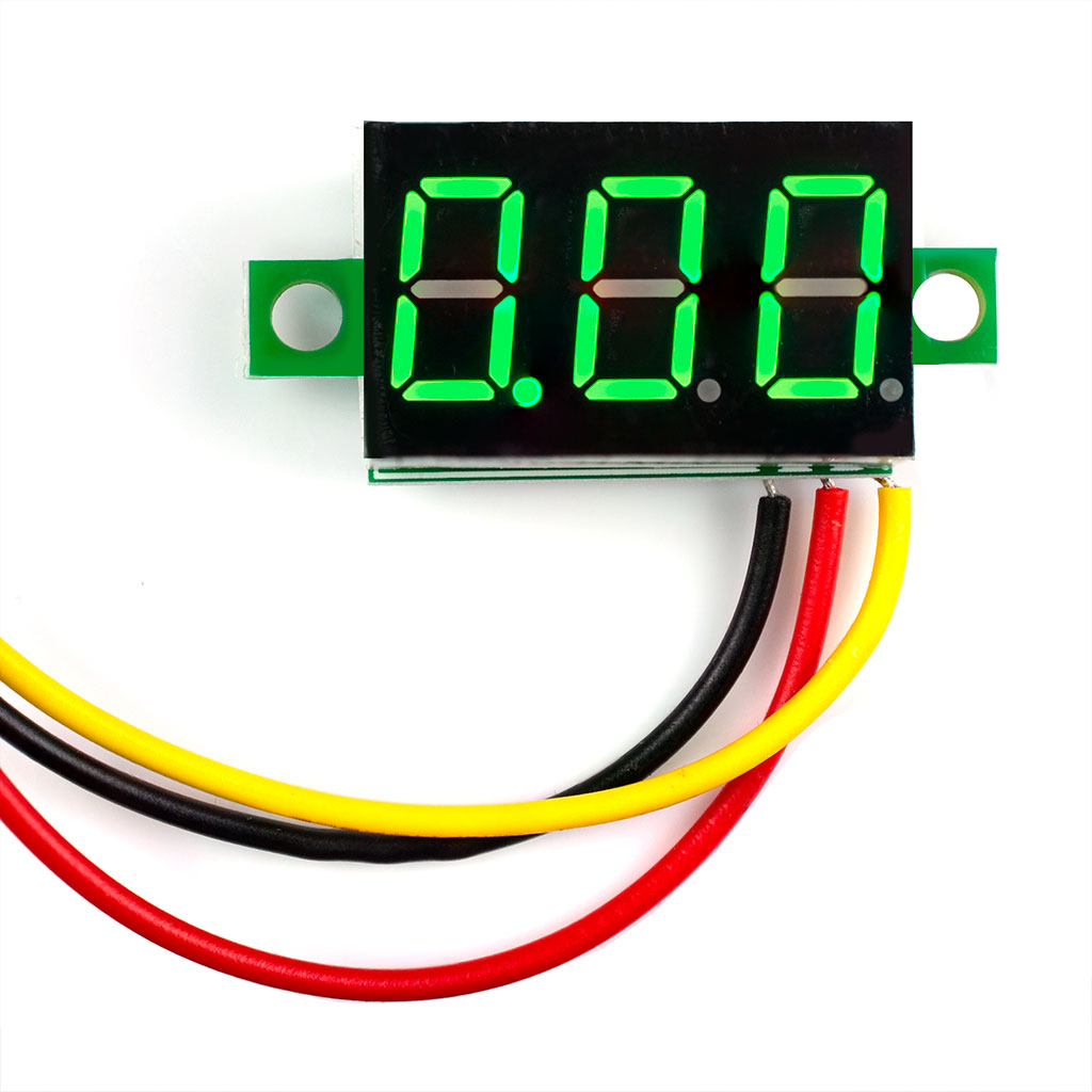 Вольтметр миниатюрный 0,36 дюимов встраиваемый цифровой постоянного напряжения, 3 сегмента, 3 провода, зеленый индикатор (Диапзон: 0-100В)
