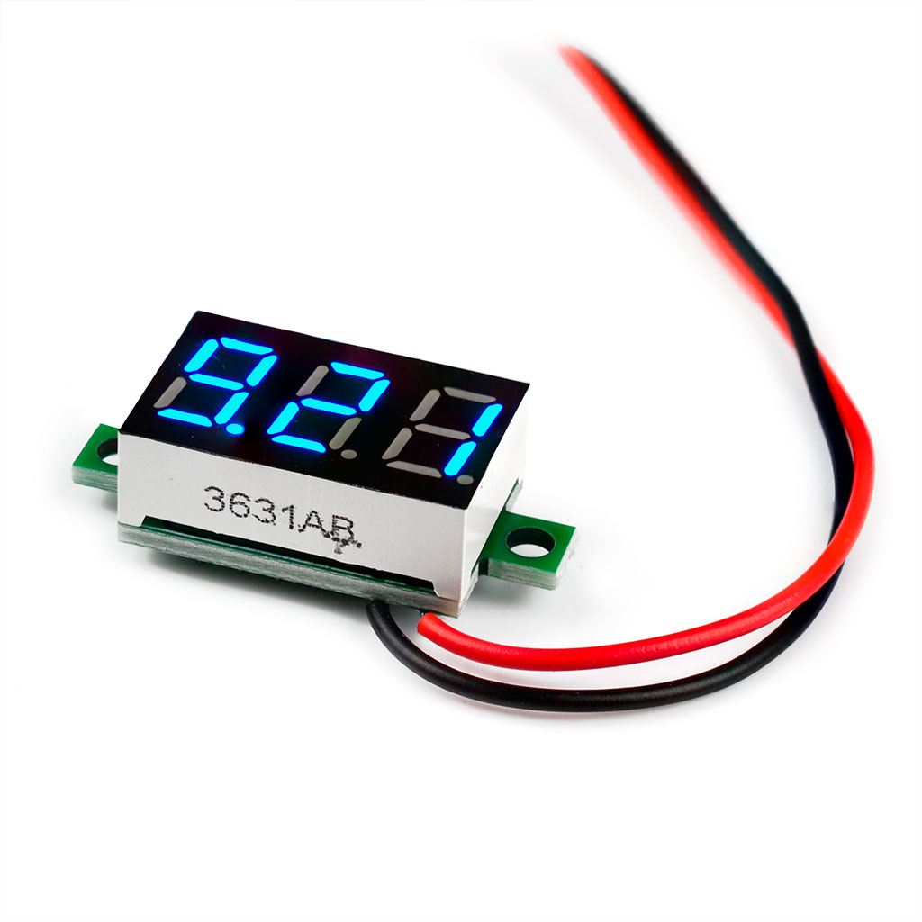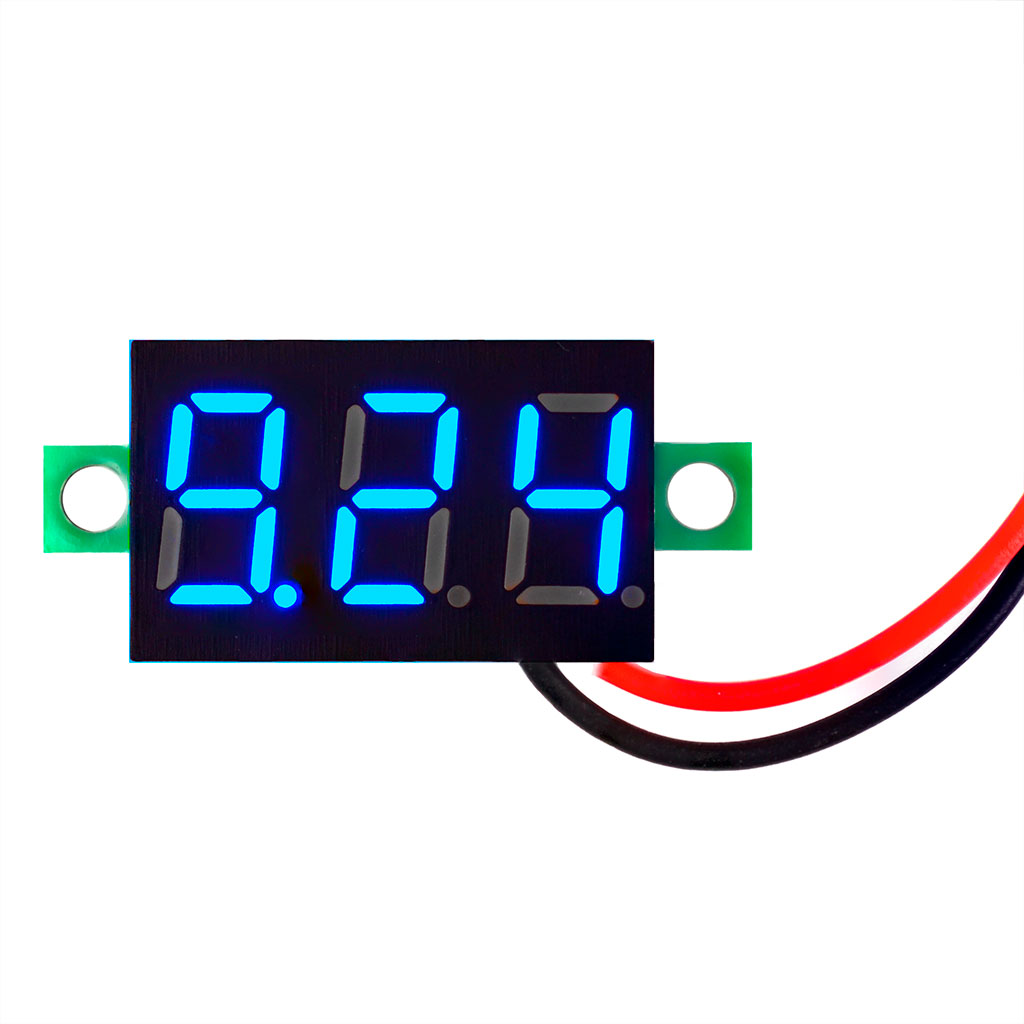 Вольтметр миниатюрный 0,36 дюимов встраиваемый цифровой постоянного напряжения, 3 сегмента, 2 провода, синий индикатор (Диапзон: 4-40В)