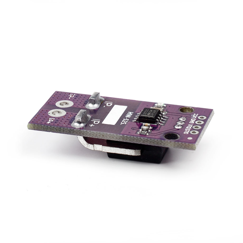 Датчик силы тока. Принцип работы датчика тока заключается в измерении датчиком Холла магнитного поля, создаваемого проходящим через датчик током. Датчик тока не требует использования токоизмерительных шунтов, реализует полную гальваническую развязку, а также содержит в себе цепи усиления сигнала и коррекции температуры. Датчик тока является биполярным, то есть может измерять ток в обоих направлениях. Сила тока, проходящяя через датчик, преобразуется в аналоговое значение на выходе. При нулевом значении силы тока значение на выходе составляет половину напряжения питания, поэтому важно осуществлять питание датчика стабилизированным напряжением.