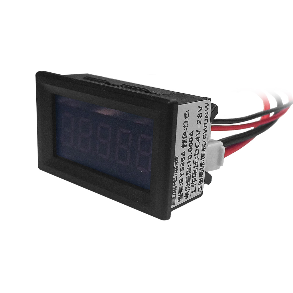 Модель GWUNW BY536A построена на мощном 8-битном процессоре семейства STM8, и собрана в легкосъёмном пластиковом корпусе размером 5 на 3 сантиметра с боковыми защелками-фиксаторами для встраиваемого монтажа. Встроенный 10-амперный шунт освобождает от необходимости подключения внешних шунтирующих малоомных резистивных нагрузок. Текущие значения измеряемого тока с дискретным шагом 0.0001А отображаются на 5-символьном красном индикаторе-экране амперметра, имеющего высоту символов 0.36-дюйма. Данные с измерениями протекающего тока обновляются немногим быстрее трёх раз в секунду. В схеме амперметра предусмотрен подстроечный резистор с механизмом вращения для корректировки ±1.5мА отображаемого значения силы тока. Установка нулевого порога амперметра производится 2-секундным замыканием контактов Zero Point. Цифровой прецизионный амперметр имеет погрешность отображаемых показаний в пределах 0.5 мА - 1.5мА. Актуальная цифра расхождения в рамках допустимого зависит от уровня напряжения питания, чем ниже вольтаж, тем меньше отклонение. BY536A 10A AMP приравнивается к классу полупрофессиональных диагностических приборов.