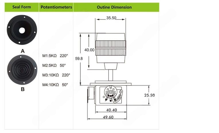 Потенциометрический промышленный джойстик CHC-308B-M4