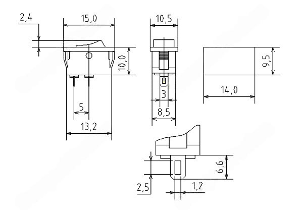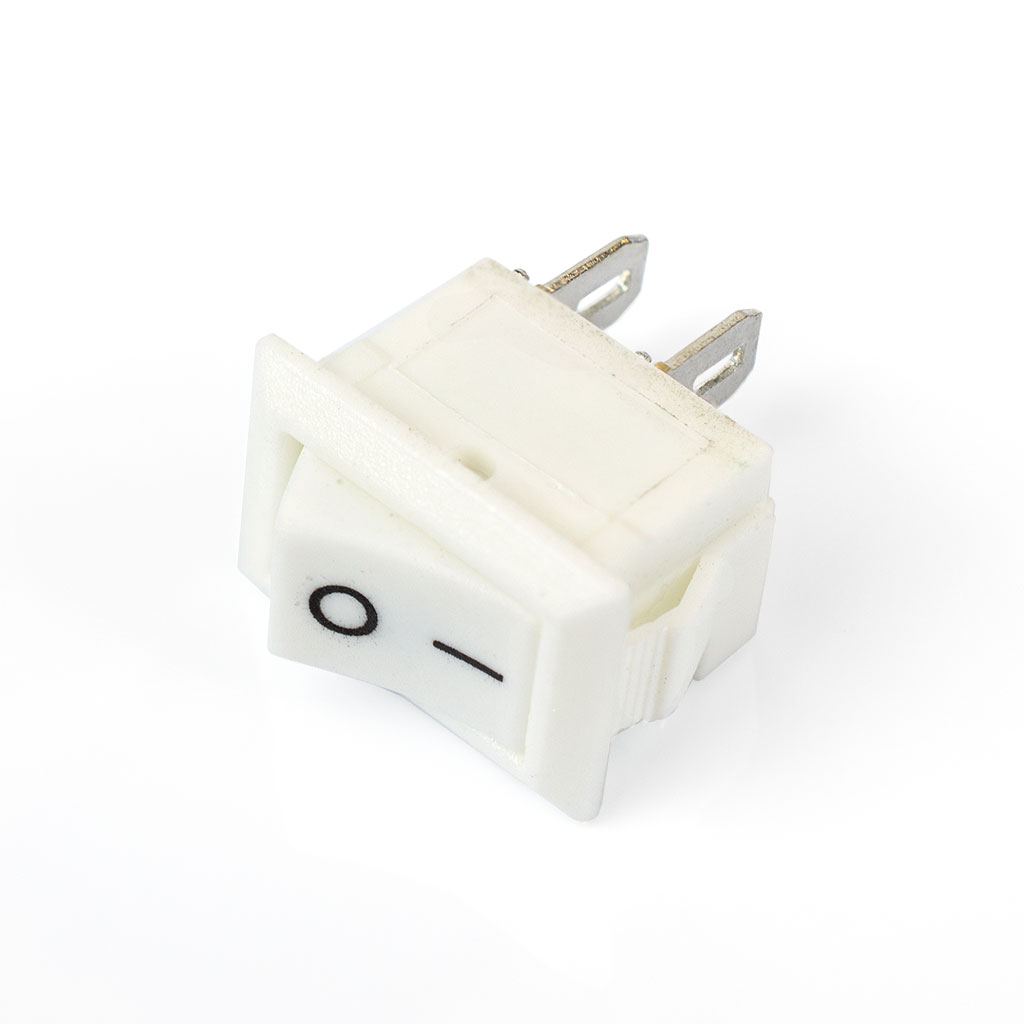 Пластиковый клавишный включатель KCD1-1 предназначен для простой и безопасной коммутации электрических линий различных устройств в сетях переменного или постоянного напряжения. Обладает удерживающими рамкой и дугообразными ребрёнными лепестками с коротких боковых сторон, предусмотренными для встраивания в подготовленное отверстие корпуса/поверхности. Двухпозиционная клавиша выключателя позволяет легко замыкать или размыкать электроцепь, удерживает заданное положение. На клавишу механизма переключения KCD1-1, помещённого в противоискровой защитный корпус, нанесены шелкографические символы "включено" и "выключено" ( I / O ). Подводимые к контактам выключателя провода должны быть надёжно припаяны или крепко затянуты креплением винт-гайка. В случаях эксплуатации выключателя в схемах управления бескорпусными приборами с опасным для человека напряжением, рекомендуется применение термоусадочной трубки для полного изолирования контактов.