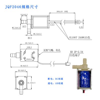 Клапан электромагнитный нормально-закрытый 12В для трубок 6 мм, материал ПВХ