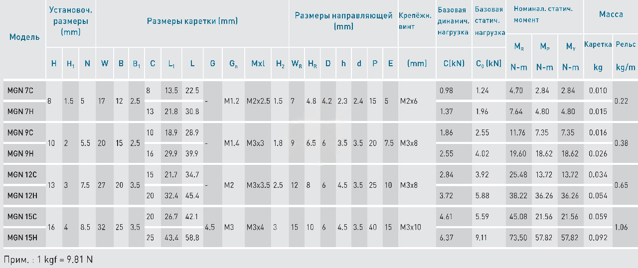 Каретка для миниатюрных линейных направляющих серии MGN.