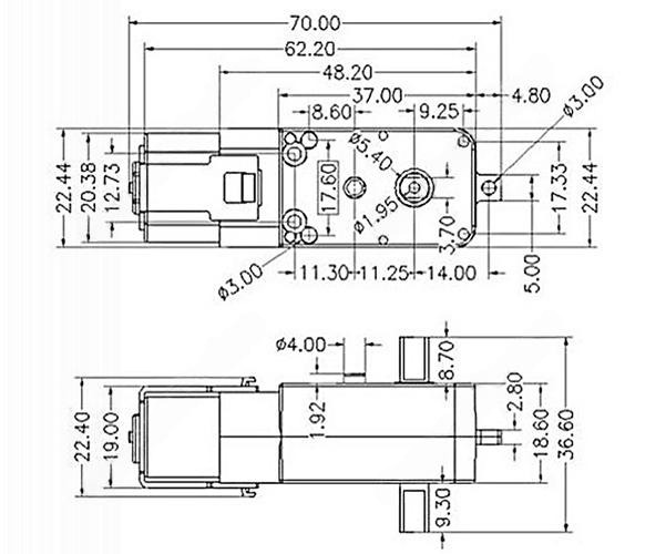 Мотор TT 200об/мин с полуметаллическим редуктором, двухсторонний вал, соотношение 1:90