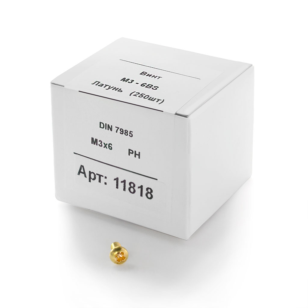 Винт латунный M3-6BS с резьбой М3 длиной 6 мм полукруг / крестовой / 250 штук