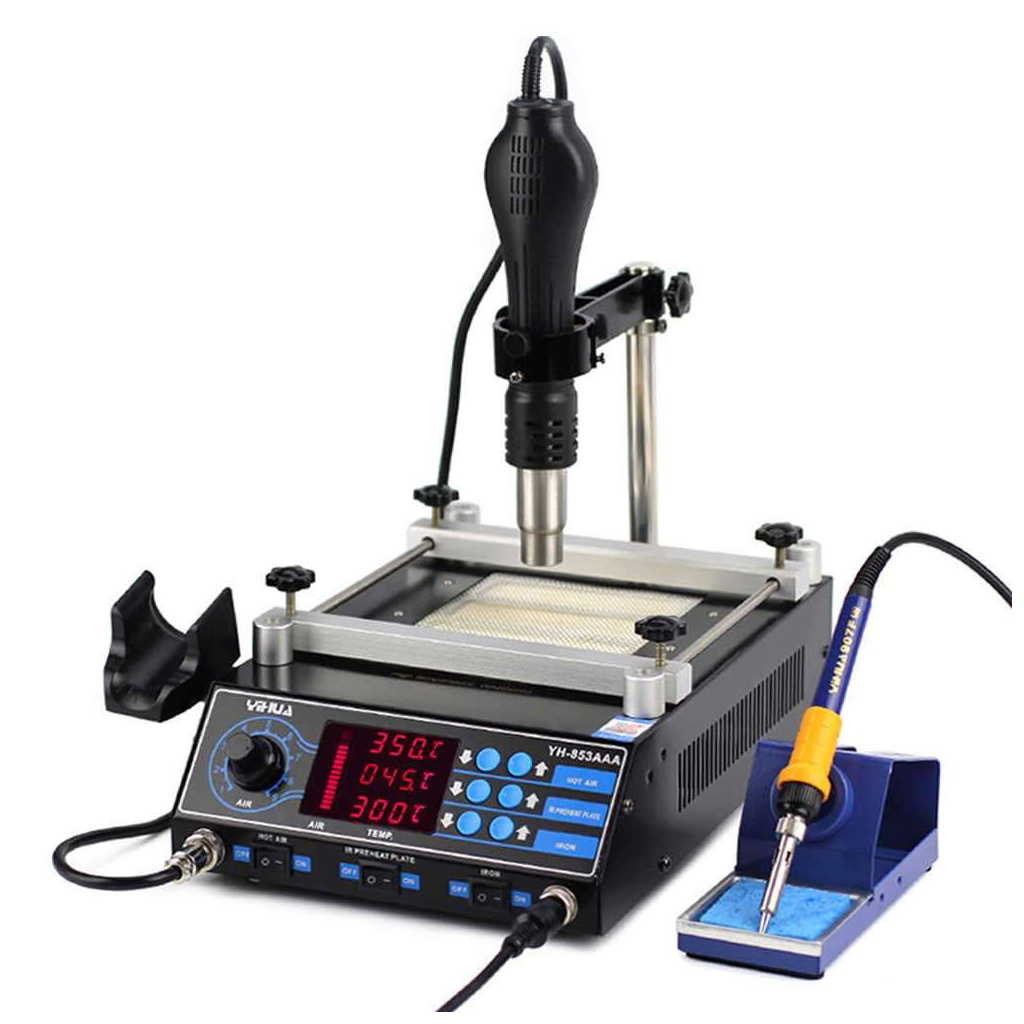 YIHUA 853AAA Профессиональная паяльная станция с подогревом 3 в 1.