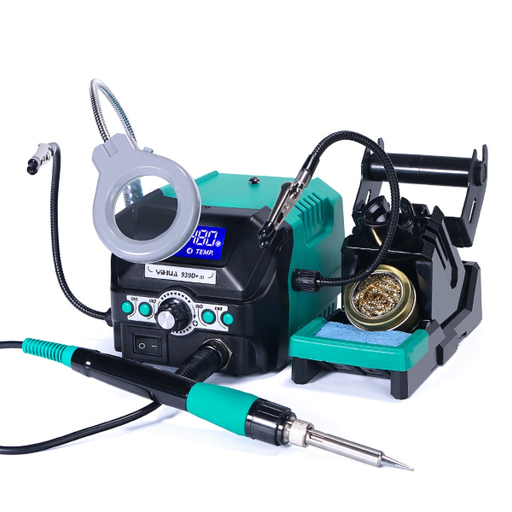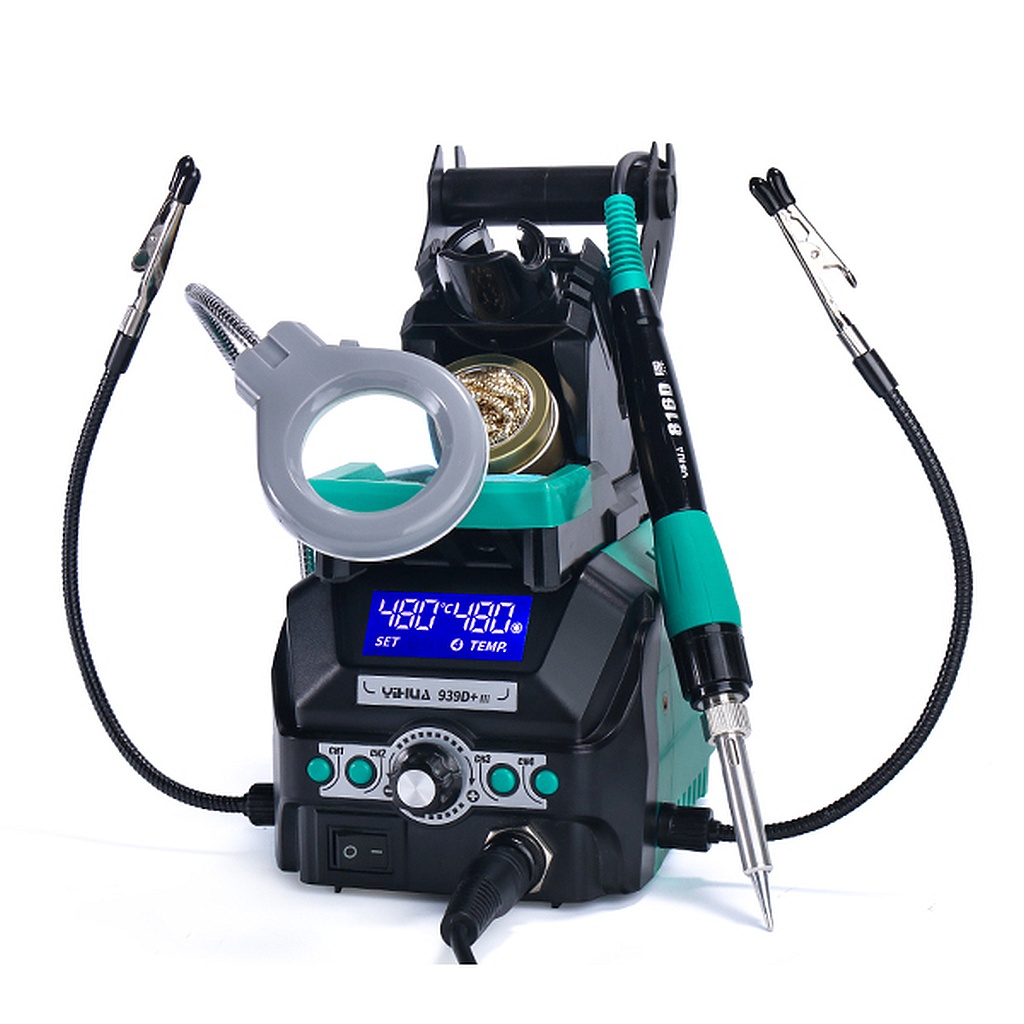 Паяльная станция YIHUA939D+-III с держателями типа крокодил и увеличительным стеклом