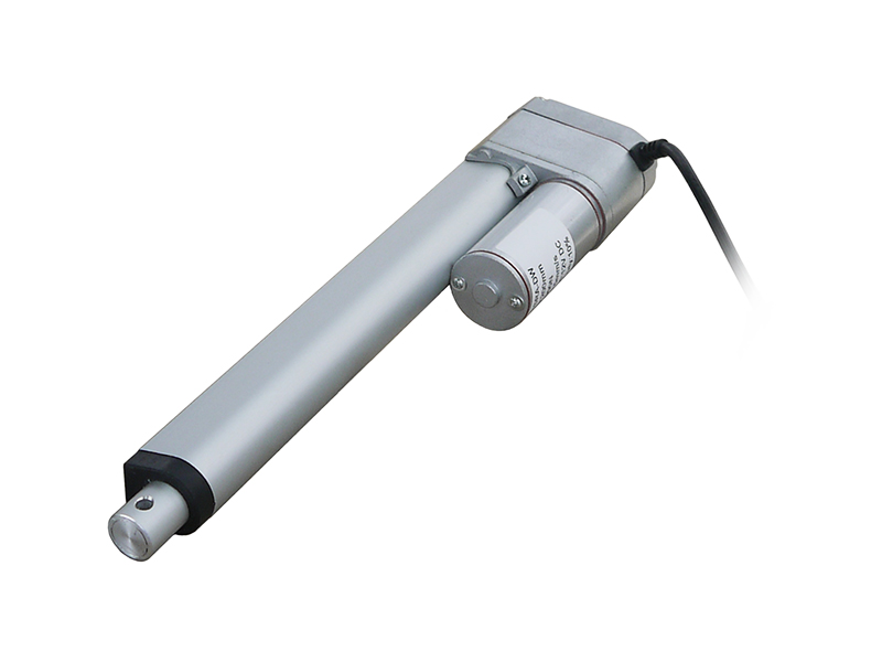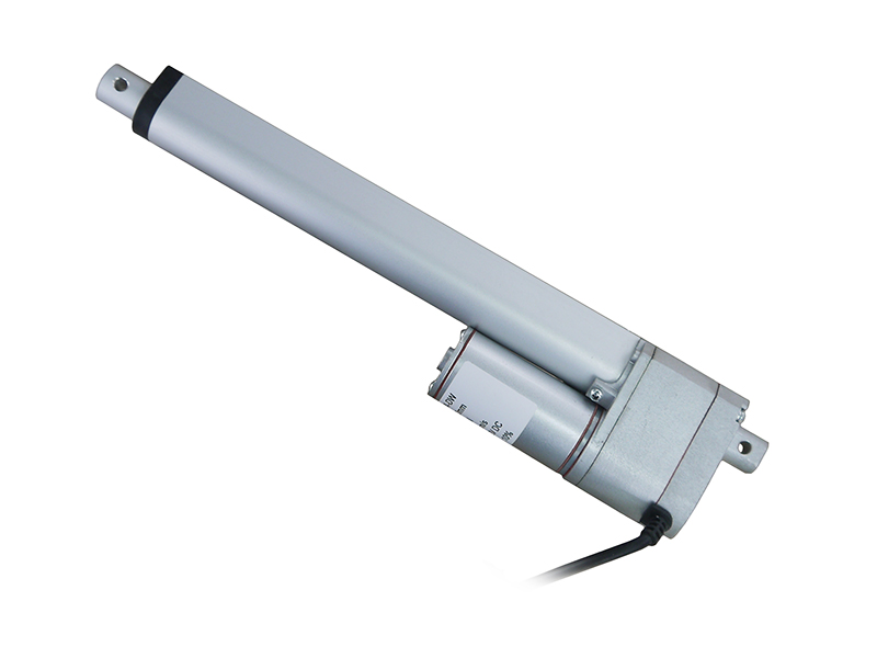 Конструкция актуатора состоит из коллекторного (щёточного) мотора постоянного тока, при помощи шестерёнчатого редуктора соединённого с направляющей осью. Редуктор влияет на изменение соотношения крутящего момента и скорости вращения между мотором и направляющей осью, снижая скорость перемещения штока (поршня) актуатора и обеспечивая необходимое усилие. Выдвижной/втягивающий шток приводится в действие с использованием передачи "винт-гайка". При этом "гайка" неподвижно соединена со штоком, и установлена на винтовую направляющую ось. Вращение оси против или по часовой стрелке вызывает линейное движение штока по всей доступной длине (рабочей области). Основание и шток актуатора крепятся к поверхностям монтажным кронштейном.