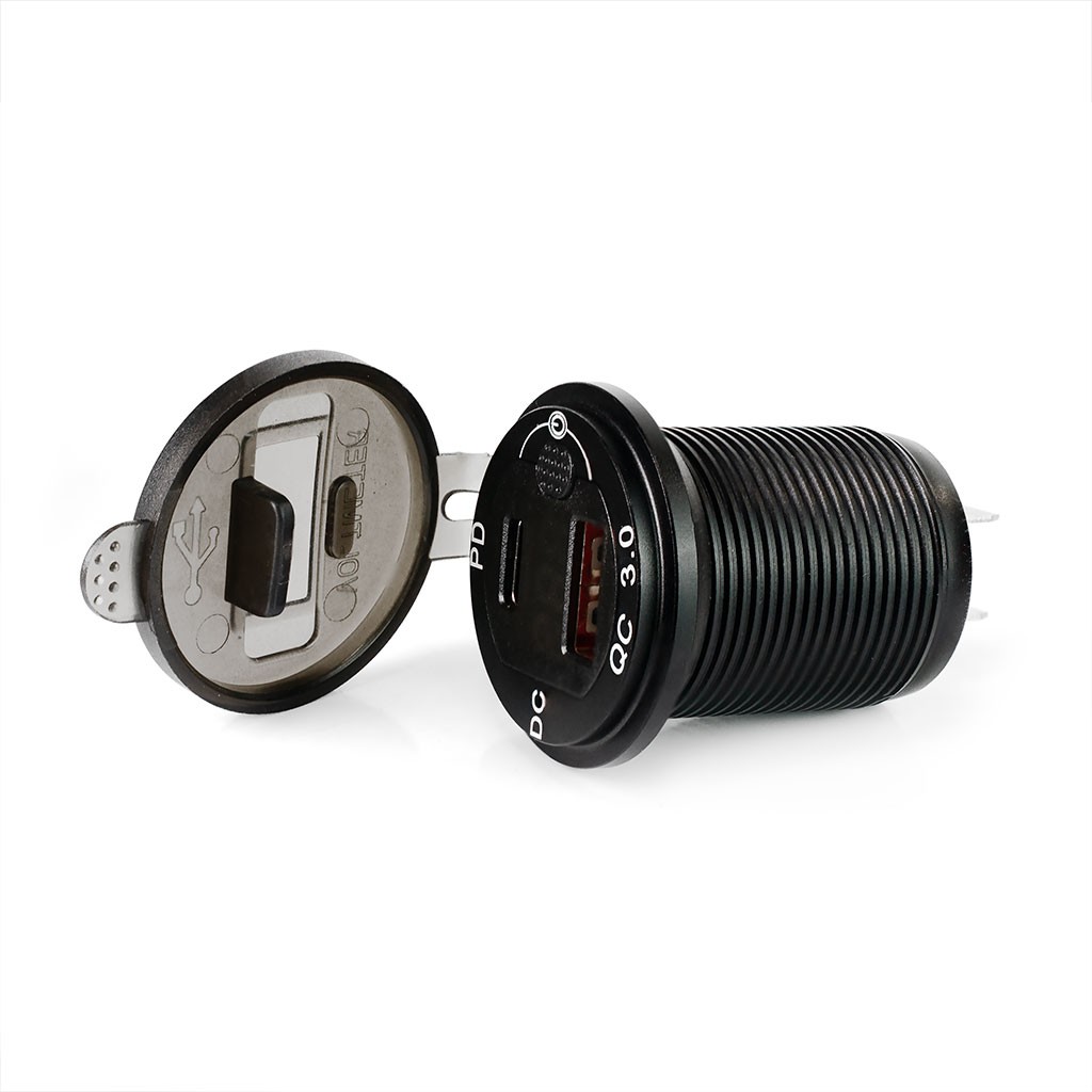 Адаптер USB 12-24V->5V 4.2A USB QC 3.0 Type-С PD круглый с вольтметром
