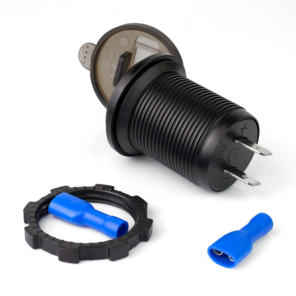 Вы можете купить Адаптер USB 12-24V->5V 4.2A USB QC 3.0 + Type-С PD круглый с вольтметром с прозрачной крышкой с выключателем для монтажа в панель, синий как за наличный расчёт, так и по безналичному расчёту ( т.н. безналу, перечислению).