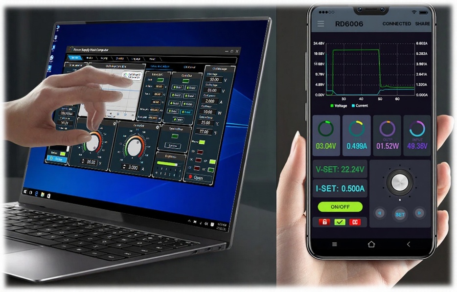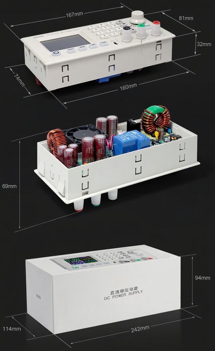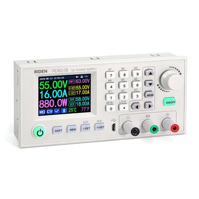 Цифровой програмируемый DC/DC пониж.преобразов.напряж. RUIDENG RD6018W. Вх.напр.6-70В. Вых.напр.0-60В. Ток.нагр.0-18A. Мощность макс.1080Вт. Экран 2.4" цветной LCD HD. Разрядность вольтметра/амперметра: 4 знака. Регулировка напряжения и тока, измерение за