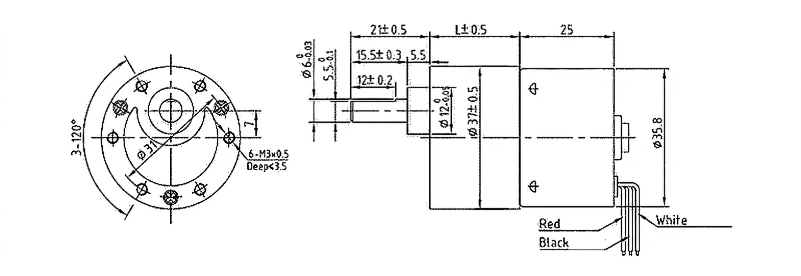 Бесколлекторный мотор-редуктор JGB37-3525 12 V 7 об/мин |