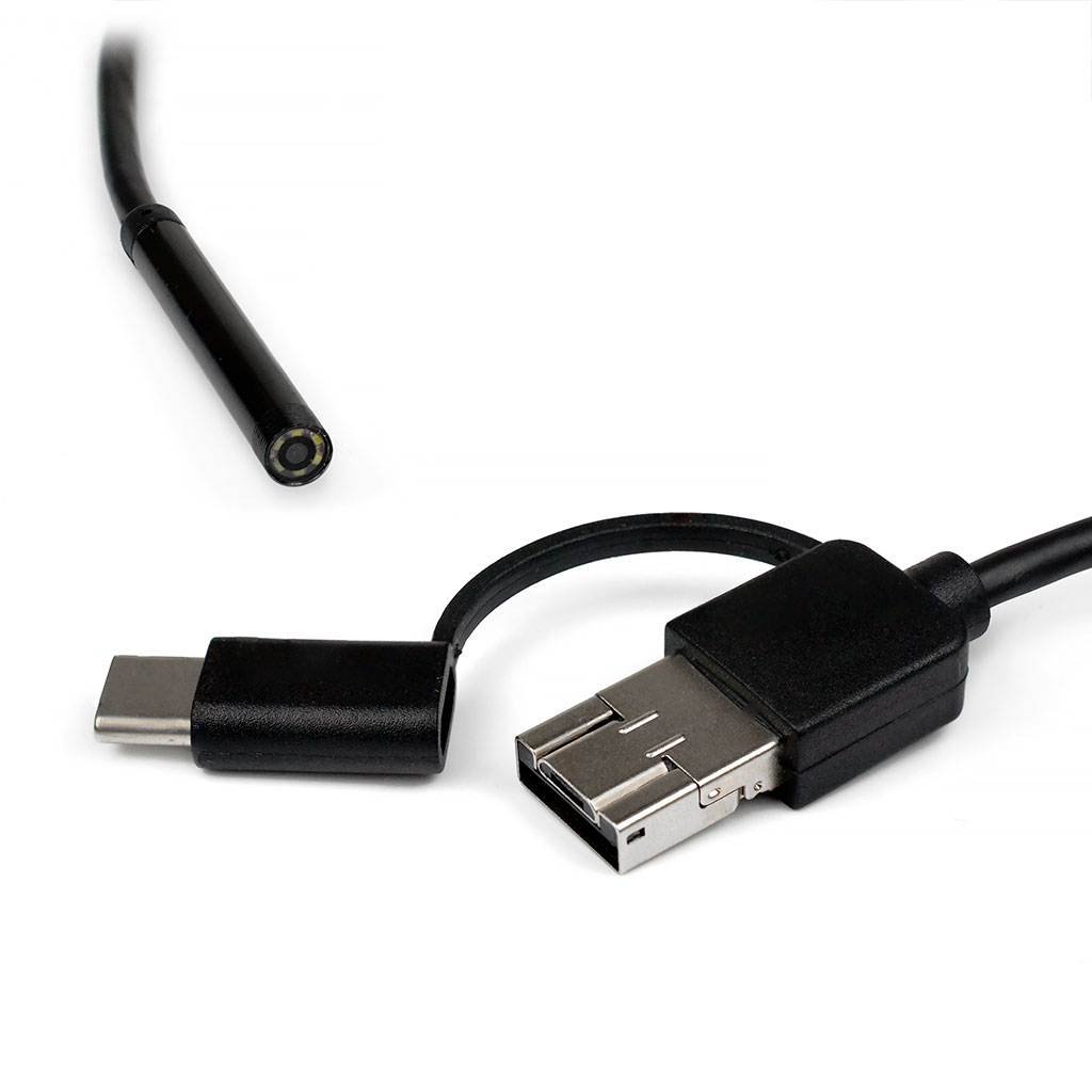 Эндоскопическая камера проводная 10 метров Жесткий шнур, светодиодная подсветка с регулируемой яркостью, диаметр камеры: 5,5 мм, влагозащищенность: IP67, разрешение: 640*480пикс и 1,3 МПикс, фокусное расстояние: 3-10 см.