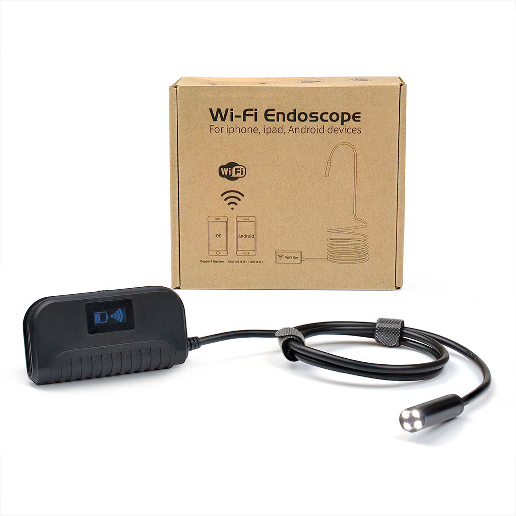Эндоскопическая камера Inskam беспроводная WiFi 1 метр Жесткий шнур, светодиодная подсветка с регулируемой яркостью, диаметр камеры: 12 мм, влагозащищенность: IP67, разрешение: 640*480пикс и 5 МПикс, фокусное расстояние: 3-10 см.