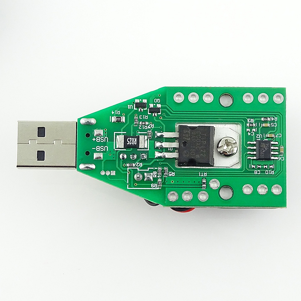 Электронная нагрузка RUIDENG Industrial Grade - простое устройство для тестирования источников питания с USB разъемом. Регулировка силы тока нагрузки осуществляется при помощи подстроечного резистора. Отображение текущих значений напряжения и силы тока отсутствуют.