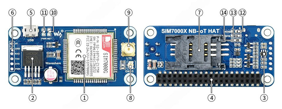 Плата расширения RPi SIM7000C NB-IoT/eMTC/EDGE/GNSS WaveShare