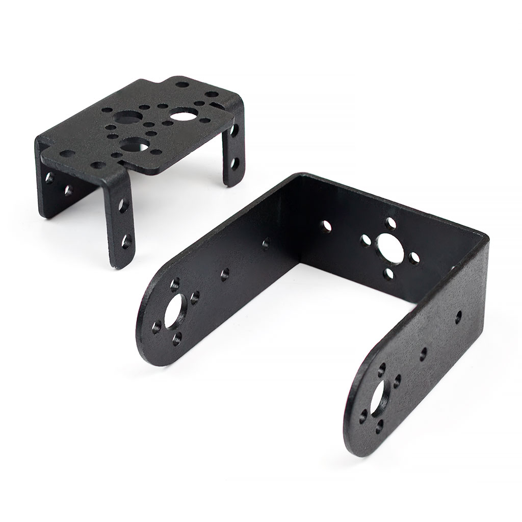 Многоцелевые кронштейны Botmaker MU37B для серво изготовлен из алюминия марки Al 6061 толщиной 2 мм. Имеют анодированное покрытие, окрашены в невыцветающий черный. Кронштейны подходят для любых конструкций роботов и различных систем мехатроники, а также сборки различных манипуляторов на основе стандартных серво с размерами 40 x 20 x 36 мм (аналогично популярному MG995). Кронштейны для серво обладают повышенной прочностью, ровные и гладкие, не повреждают кожу рук в процессе монтажа. Их можно использовать как часть рамы, или как основу несущего каркаса для шагающего робота, или для создания управляемых манипуляторов различной длины и назначения.