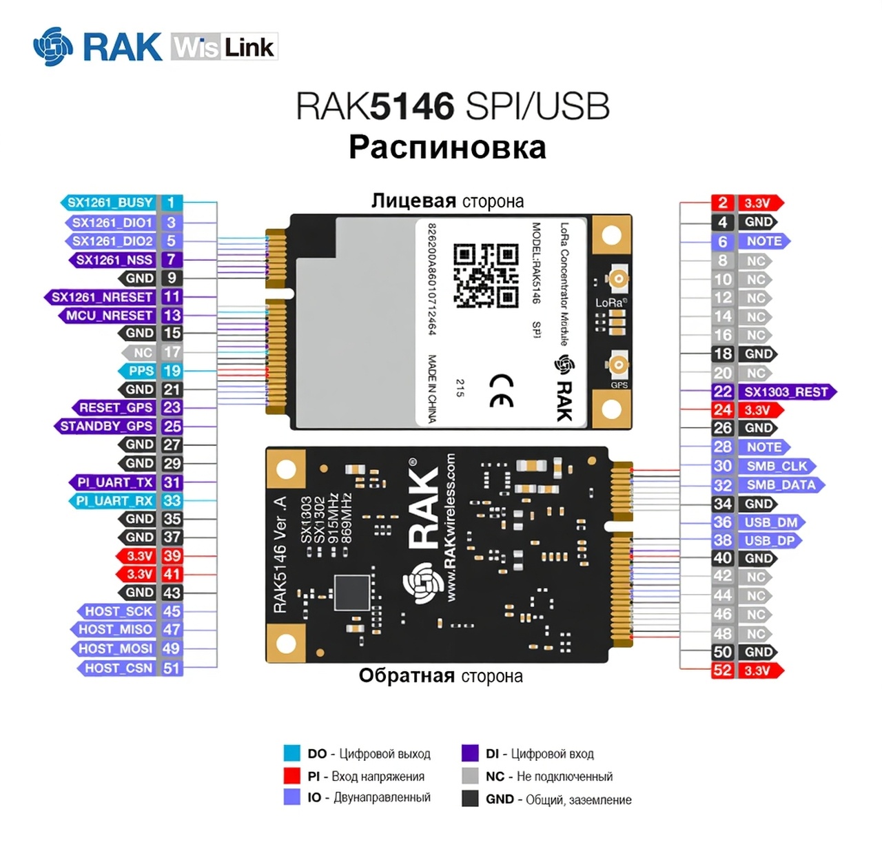 Функциональное назначение контактов mPCIe, распиновка RAK5146