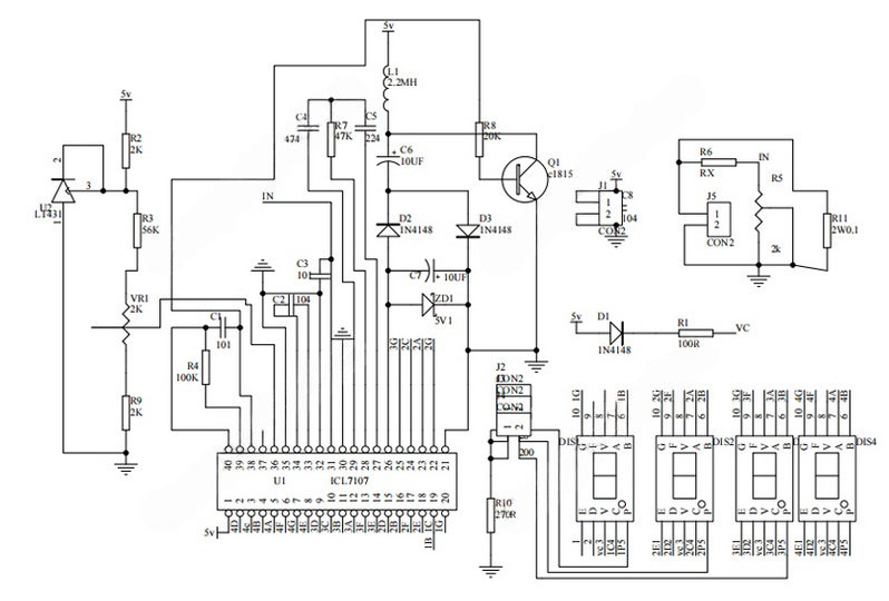 Электрическая принципиальная схема 4-знакового вольтметра ICL7107 DIY