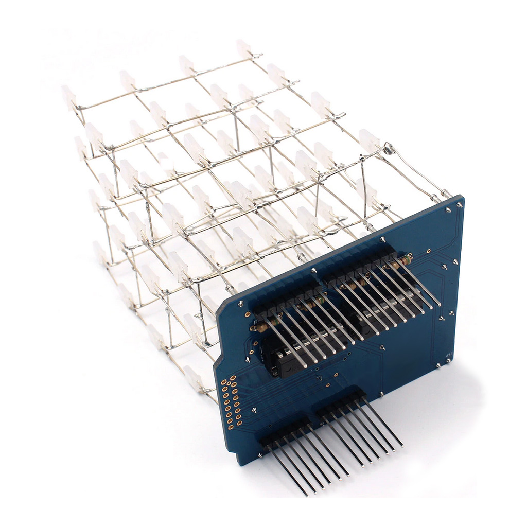 Конструирование трёхмерного светодиодного кубика основано на поэтапном монтаже 4 отдельных слоёв, состоящих из двухмерных массивов 4х4 светодиодов, в последствии объединяемых вместе в одну общую цепь питания и управления. Сборка каркаса 3Д светодиодного куба потребует самостоятельного изготовления дополнительных удерживающих конструкций из сторонних материалов, призванных одновременно помочь и значительно упростить спайку проволочных выводов диодов в ровную двухмерную сетку каждого из 4 слоёв. В конструкторе среднего уровня сложности, для достижения наиболее правильной геометрической формы каркаса со множеством точек спайки, необходимы в равной степени внимание, аккуратность и терпение.