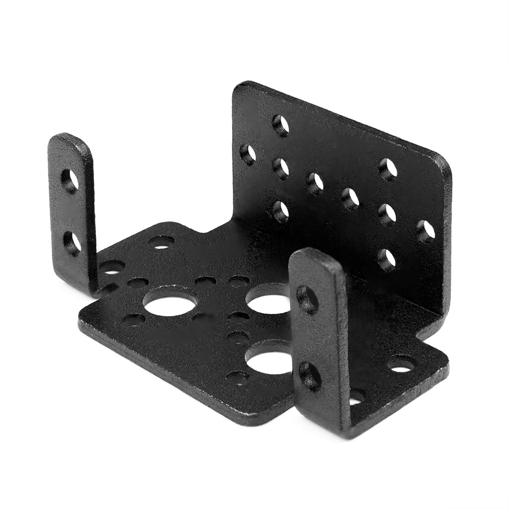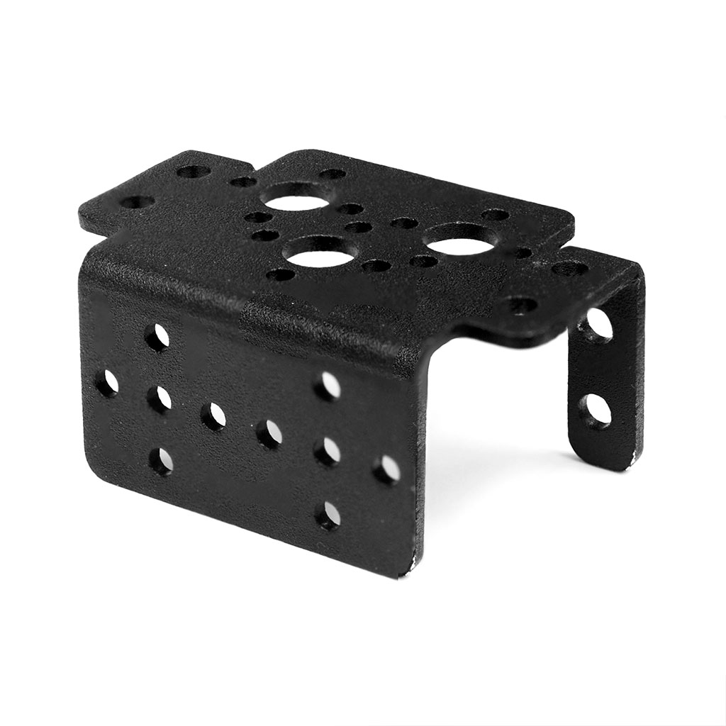 Многоцелевой кронштейн Botmaker M16B для серво изготовлен из алюминия марки Al 6061 толщиной 2 мм. Имеет анодированное покрытие, окрашен в невыцветающий черный. Необходим для любых конструкций роботов и различных систем мехатроники, а также сборки различных манипуляторов на основе стандартных серво с размерами 40 x 20 x 36 мм. Кронштейн для серво обладает повышенной прочностью, ровный и гладкий, не повреждает кожу рук при монтаже. Его можно использовать как часть рамы, или как основу несущего каркаса для шагающего робота, или для создания управляемых манипуляторов различной длины и назначения.