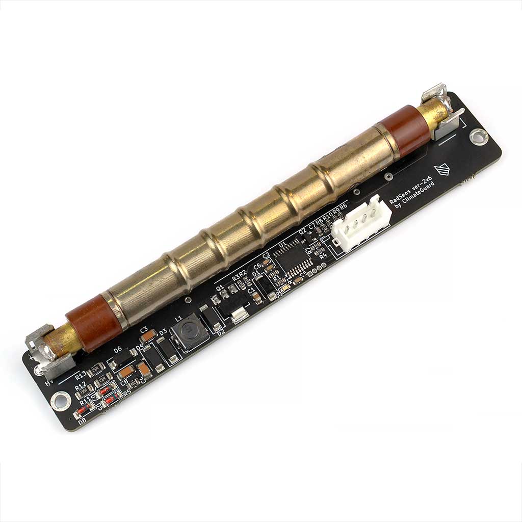 В качестве чувствительного элемента в модуле используется газоразрядный счетчик Гейгера-Мюллера СБМ20-1, применяемый в большинстве бытовых и профессиональных дозиметров. Устройство поддерживает измерение и расчет интенсивности излучения с использованием двух алгоритмов: с динамическим диапазоном времени счета для обнаружения локальных источников загрязнения, и с широким статическим временным диапазоном для точного измерения значения текущего радиационного фона. Также имеется возможность использовать модуль без дополнительных устройств в качестве «индикатора» излучения, ориентируясь на частоту мигания установленного на плате светодиода. Регистрация импульсов, алгоритмы расчета и передача данных по I2C с частотой работы шины до 400кГц реализованы на установленном на плате микроконтроллере STМ32. Модуль поддерживает программную смену адреса и включение / отключение работы высоковольтного преобразователя для повышения энергоэффективности. Также имеется возможность по I2C корректировать чувствительность счетчика к ионизирующему излучению, что позволяет использовать на данном модуле другие счетчики с аналогичным анодным напряжением питания.