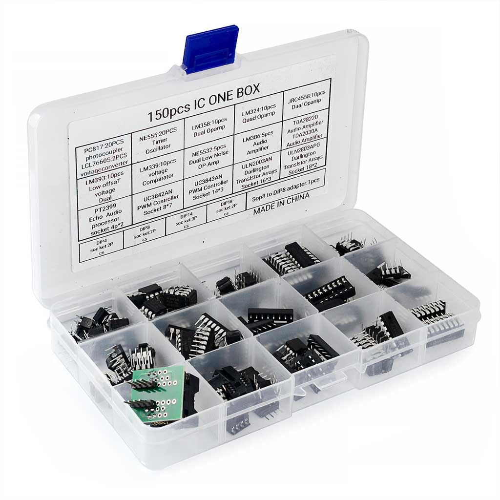 Набор микросхем 150 шт PC817 NE555 LM358 LM324 JRC4558 LM393 LM339 NE5532 LM386 TDA2822D PT2399 UC3842AN UC3843AN ULN2003AN ULN2803APG