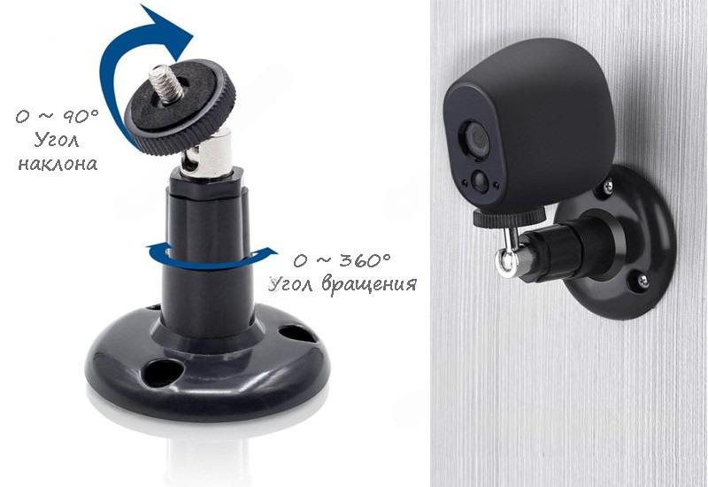 Пластиковый кронштейн предназначен для установки камеры наблюдения HD Video на вертикальную или горизонтальную поверхность (на стену или к потолку). Монтаж основания кронштейна производится с помощью нескольки шурупов, вкручиваемых в заранее подготовленные просверленные отверстия. Узел крепления с углами наклона 90° и панорамирования 360° основан на прочном шариковом зажиме. Он обеспечивает возможность выставления и надёжного фиксирования направления объектива камеры в указанных диапазонах. Кронштейн выдерживает нагрузку до 1кг. и совместим с любыми лёгкими видеокамерами, обладающими соответвующим ответным резьбовым креплением стандарта М6.
