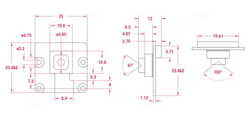 Обновлённый сенсор Sony IMX708 на площади размером 6.45 x 3.63мм (7.4м диагональ) имеет массив из 4608 х 2592 светочувствительный элементов. IMX708 предлагает на выбор два варианта детализации и передачи цвета изображения: 11.9 Мегапикселей в обычном режиме съёмки и 3 Мегапиксела с улучшенной контрастностью в наиболее светлых или тёмных сценах в режиме расширенного динамического диапазона (HDR). Камера Raspberry Pi Camera Module 3 поддерживает захват видео в формате Full HD при частоте 50 кадров в секунду. Из четырёх вариантов камер RPi Camera Module 3, версия Wide отличается расширенной углами оптического зрения: 102° по горизонтали и 67° по вертикали. Ночная съёмка в инфракрасном свете для широкоугольной версии возможна через невозвратное удаление физического ИК-фильтра.