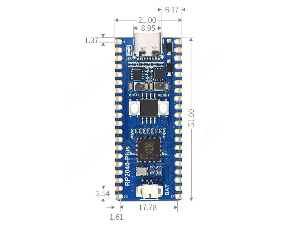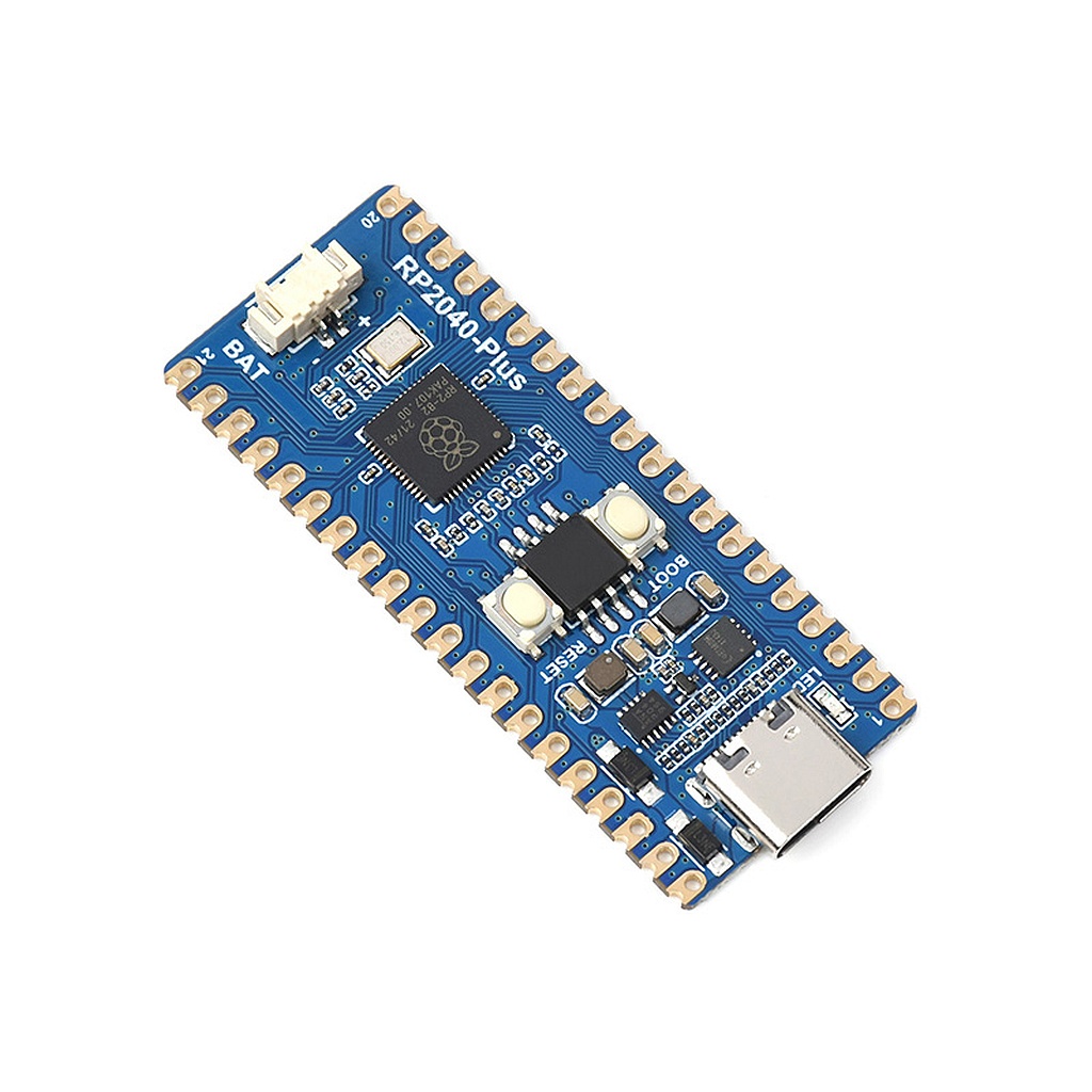 Waveshare RP2040-Plus 16Mb - новый взгляд на Raspberry Pi Pico от Waveshare. Основные отличия от Raspberry Pi Pico - больше флеш памяти, USB-C вместо устаревшего micro-USB и возможность питания от литиевых аккумуляторов (с возможностью зарядки аккумулятора через разъем USB-C). В остальном RP2040-Plus полностью совпадает с оригинальной Raspberry Pi Pico, что означает возможность беспрепятственного использования любых плат расширения, изначально разработанных для Raspberry Pi Pico.