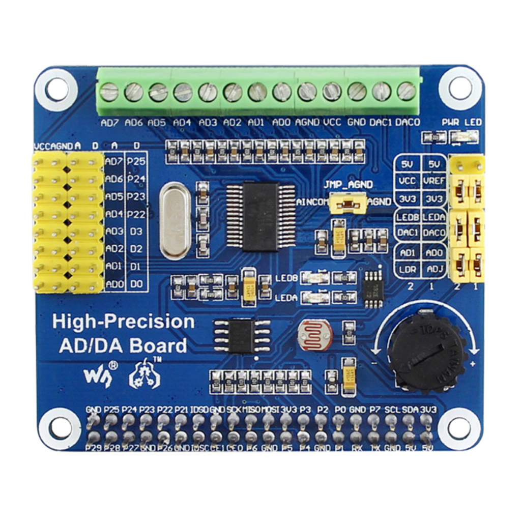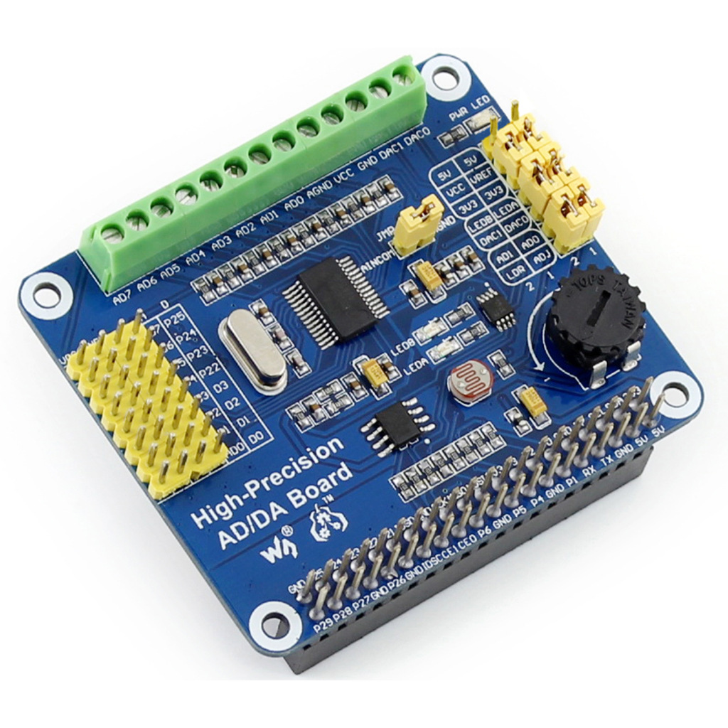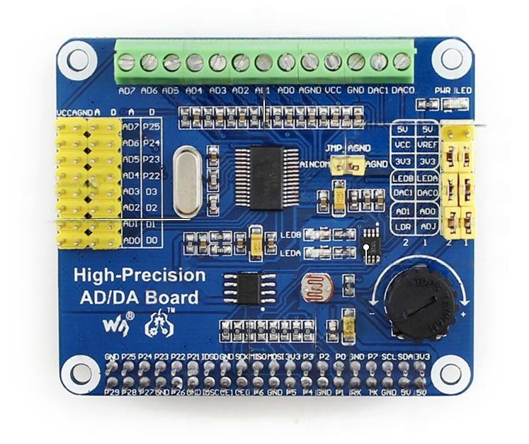 Компоненты на плате расширения Высокоточный АЦП/ЦАП для Raspberry Pi