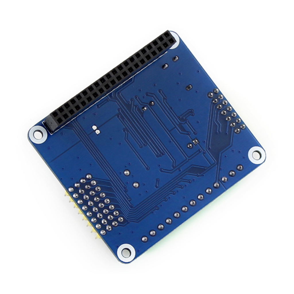 Аналоговые входы/выходы преобразователей АЦП/ЦАП объединены с линиями напряжения питания, разведены в клеммной колодке винтового крепления, и удобно сгруппированы в рядах разъёмов подключения внешних датчиков или сенсоров. Все 40 контактов GPIO-разъёма в модуле AD/DA Expansion Board RPi продублированы сверху для задач дальнейшего расширения приложения с возможностью установки других электронных модулей или присоединения проводных шлейфов.