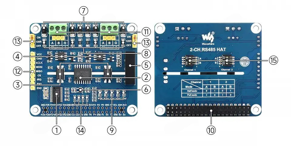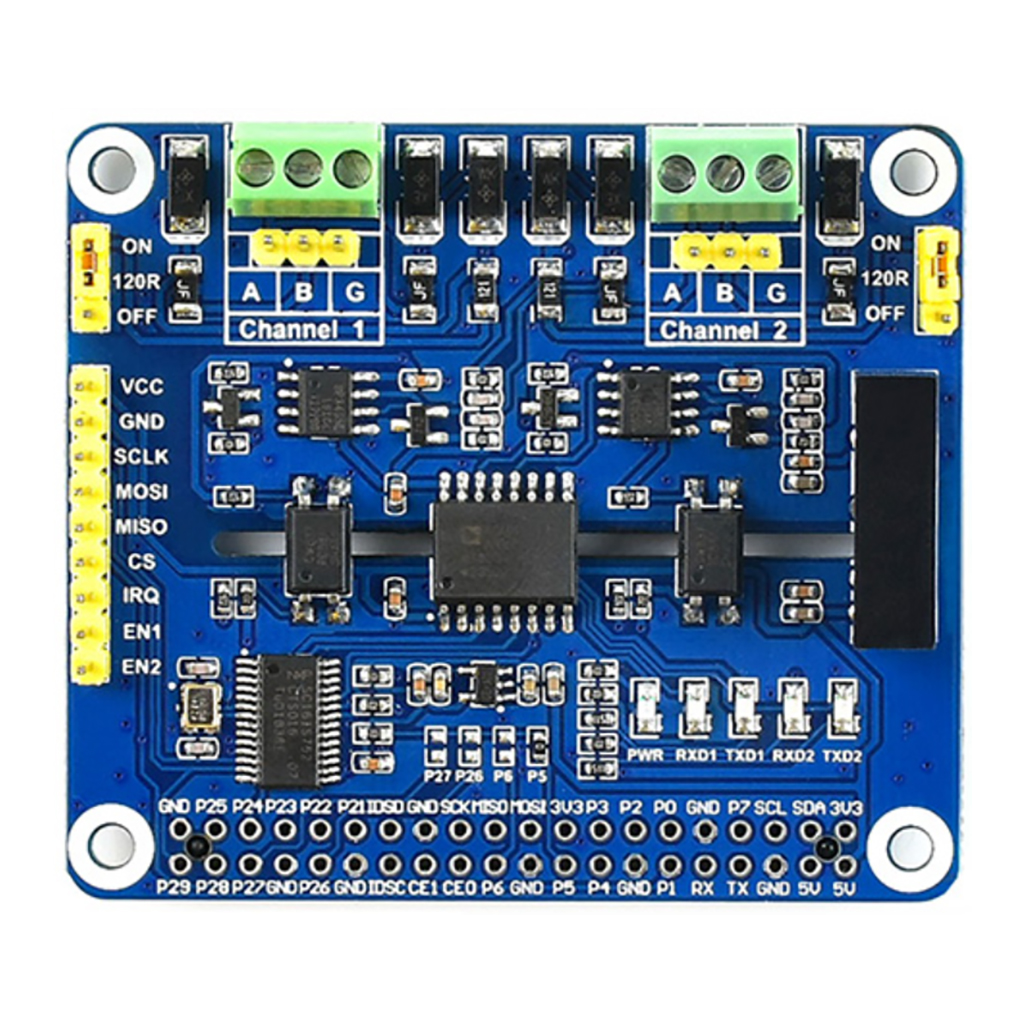 Модуль расширения двухканального интерфейса RS485 HAT от Waveshare спроектирован специально для популярной микрокомпьютерной платформы Raspberry Pi. Он позволяет организовать управление любым промышленным оборудованием с поддержкой современного стандарта RS485 по двум независимым друг от друга каналам, с суммарным охватом до 62 сетевых узлов. Плата расширения позиционируется на двух ключевых сигналопреобразующих контроллерах SC16IS752 (SPI/UART-TTL) и SP3485 (UART-TTL/RS485). Модуль дополнительно оснащён схемой многоуровневой защиты и безопасности с полноценным электрическим разделением передающей-принимающей сторон и согласованием рабочих напряжений 3.3В/5В. В него интегрированы элементы оптической и цифровой развязки сигнальных линий, присутствует защита по питанию, установлены подавители переходного напряжения (TVS-супрессоры) и SMD-предохранители для балансной линии. Модуль расширения функционирует в двух режимах управления каналами приёмопередатчика RS485 — автоматическом и ручном. Плата 2-канального интерфейса RS485 для RPi обладает высокой стабильностью, надёжностью, и скоростью передачи информации до 2Мбод (зависит от режима).
